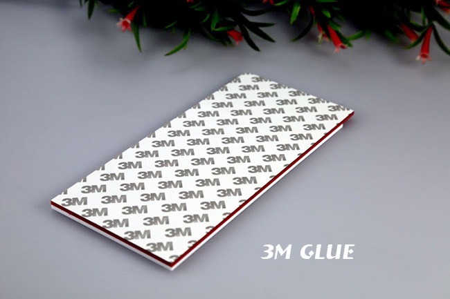 The product is made of Acrylic. The back of the product has 3M glue, you can peel off the film and affix it on the door